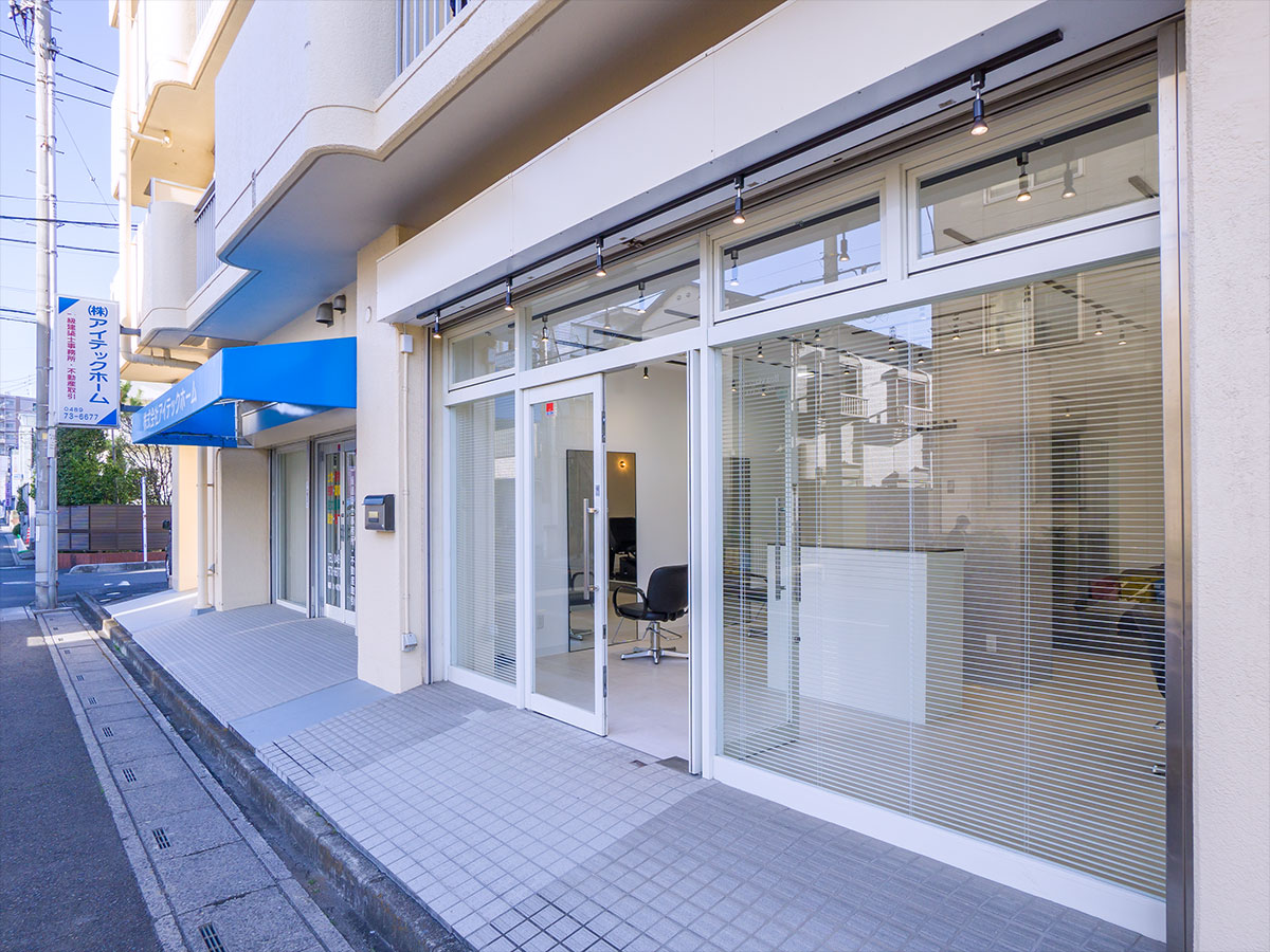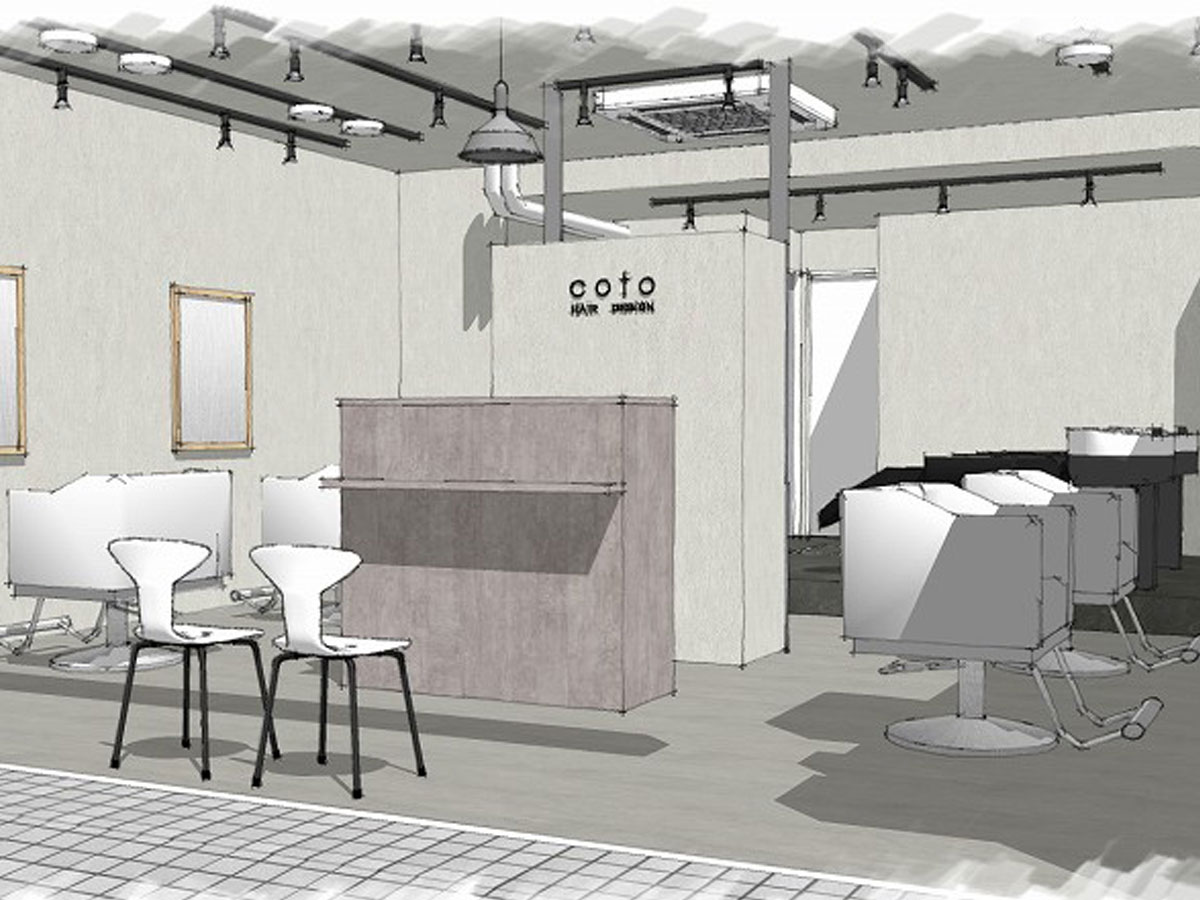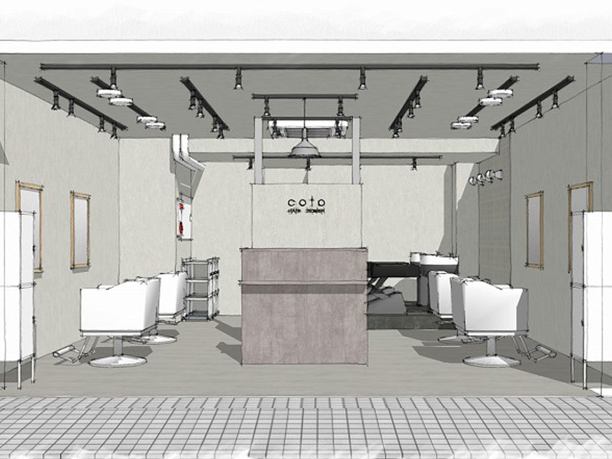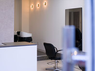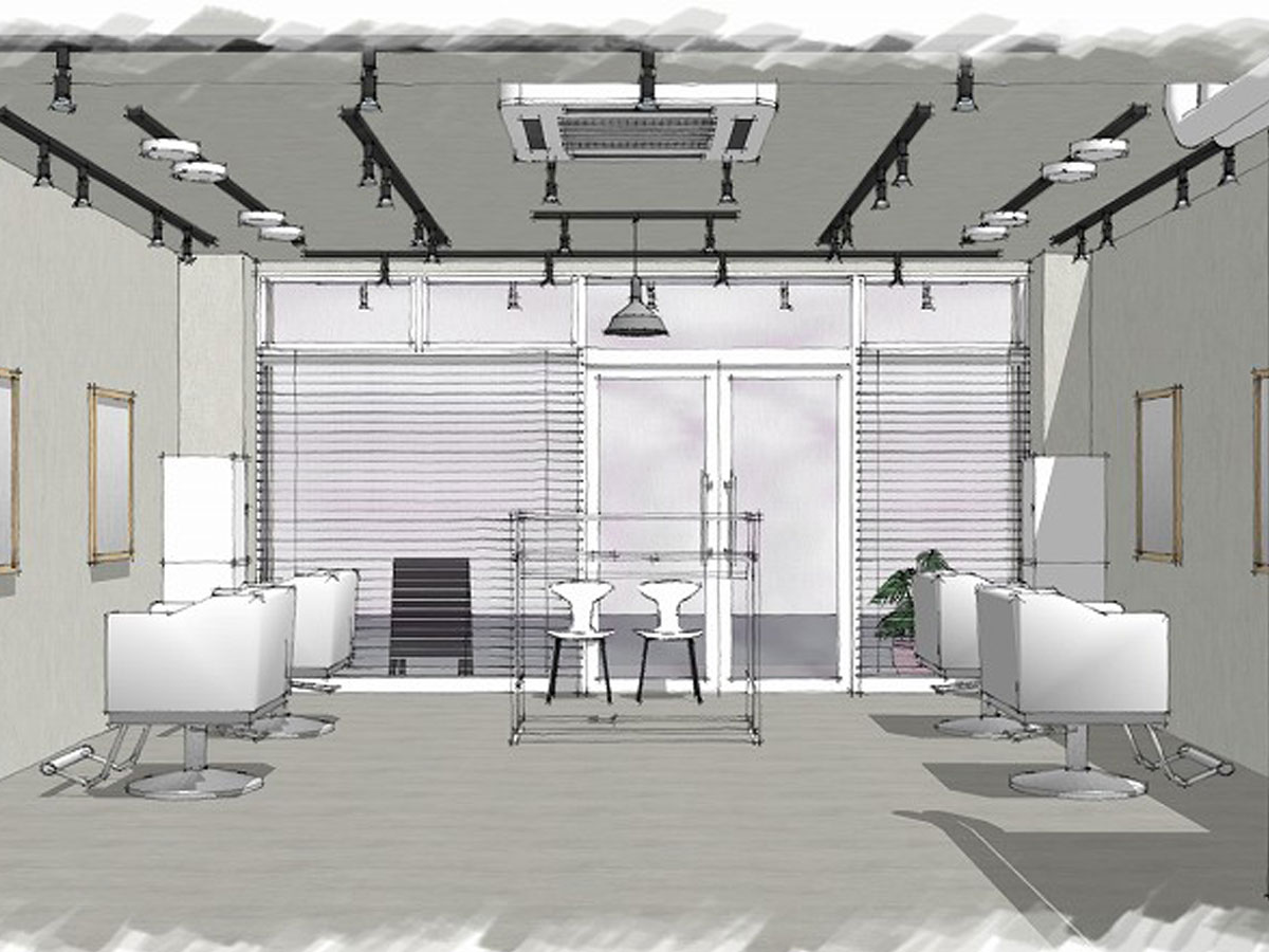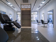 受付を中央に配し、セット面の距離感をとったゆったり空間の駅近サロン。