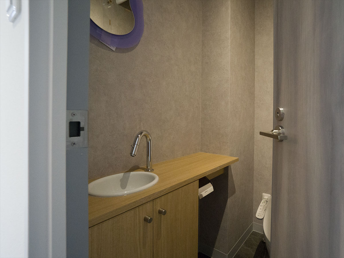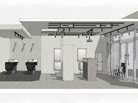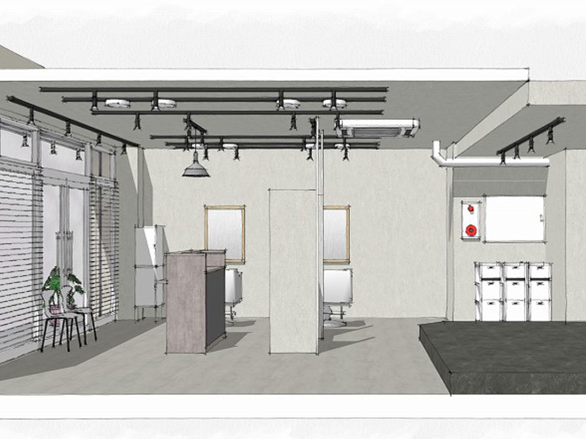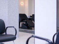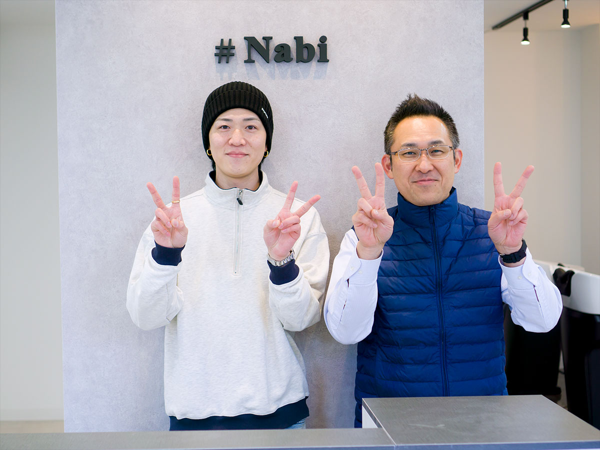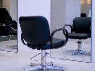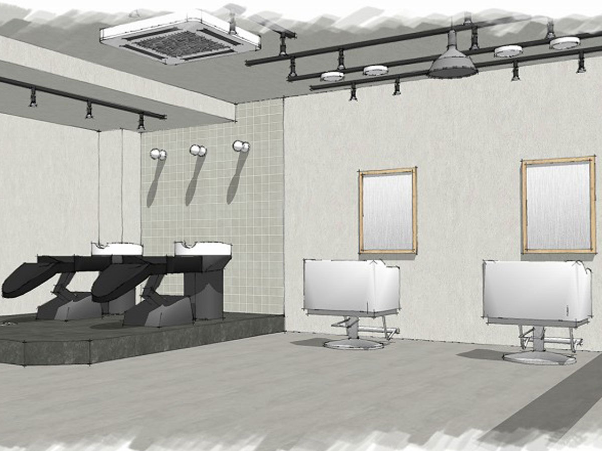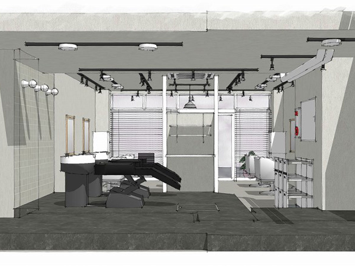 受付を中央に配し、セット面の距離感をとったゆったり空間の駅近サロン。